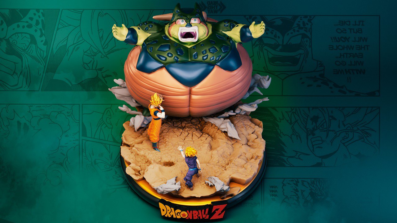 Personaje: Cell Explotando con Gohan y Goku