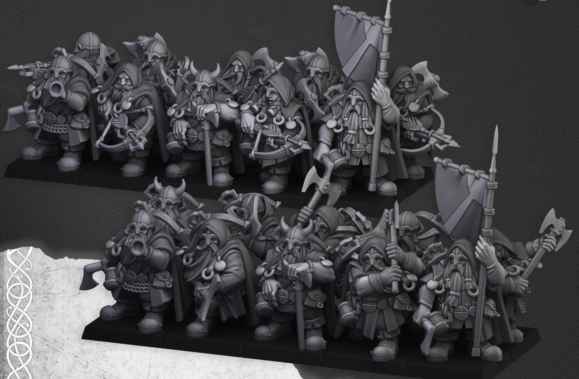 Guerreros Enanos con arma y Ballesta